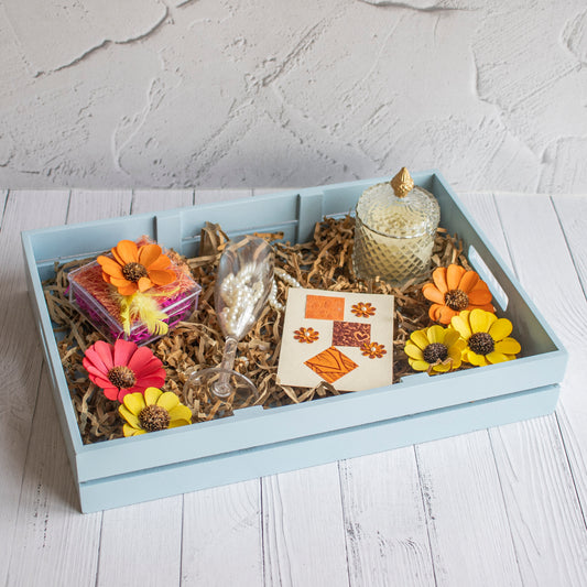- Gifting Baskets: Our wooden gifting baskets combine functionality and aesthetics, providing a charming and elegant way to present your curated gifts. Choose from different shapes and sizes to suit your gifting needs and create a memorable impression.